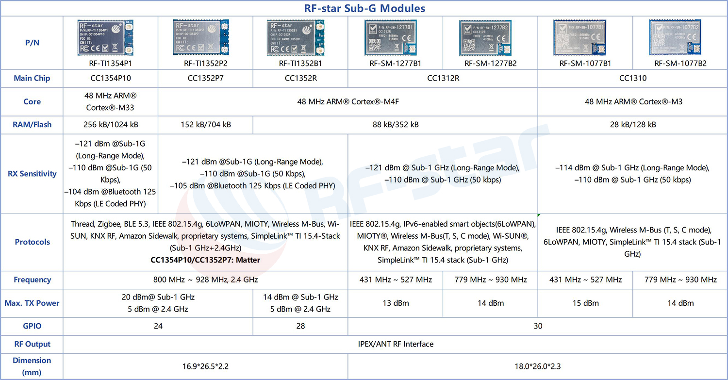 Einige Sub-G-Module von RF-Star unterstützen den gleichzeitigen Betrieb im Dualmodus (2,4 GHz + Sub-G) und sind zudem mit verschiedenen Kommunikationsprotokollen wie Wi-SUN und proprietären Protokollen kompatibel. Dieselbe Hardwareplattform lässt sich an unterschiedliche Markt- und Anwendungsanforderungen anpassen und bietet gleichzeitig ausreichend Spielraum für zukünftige Produkt-Upgrades und Funktionserweiterungen.